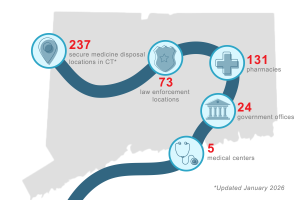Our toolkit makes it easy to support your neighbors and loved ones with information on secure household medicine disposal in Connecticut. View a directory of locations, access shareable social media graphics, and learn more about the easy-to-use resources available near you.
