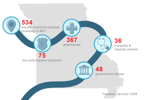 Our toolkit makes it easy to support your neighbors and loved ones with information on secure household medicine disposal in Missouri. View a directory of locations, access shareable social media graphics, and learn more about the easy-to-use resources available near you.